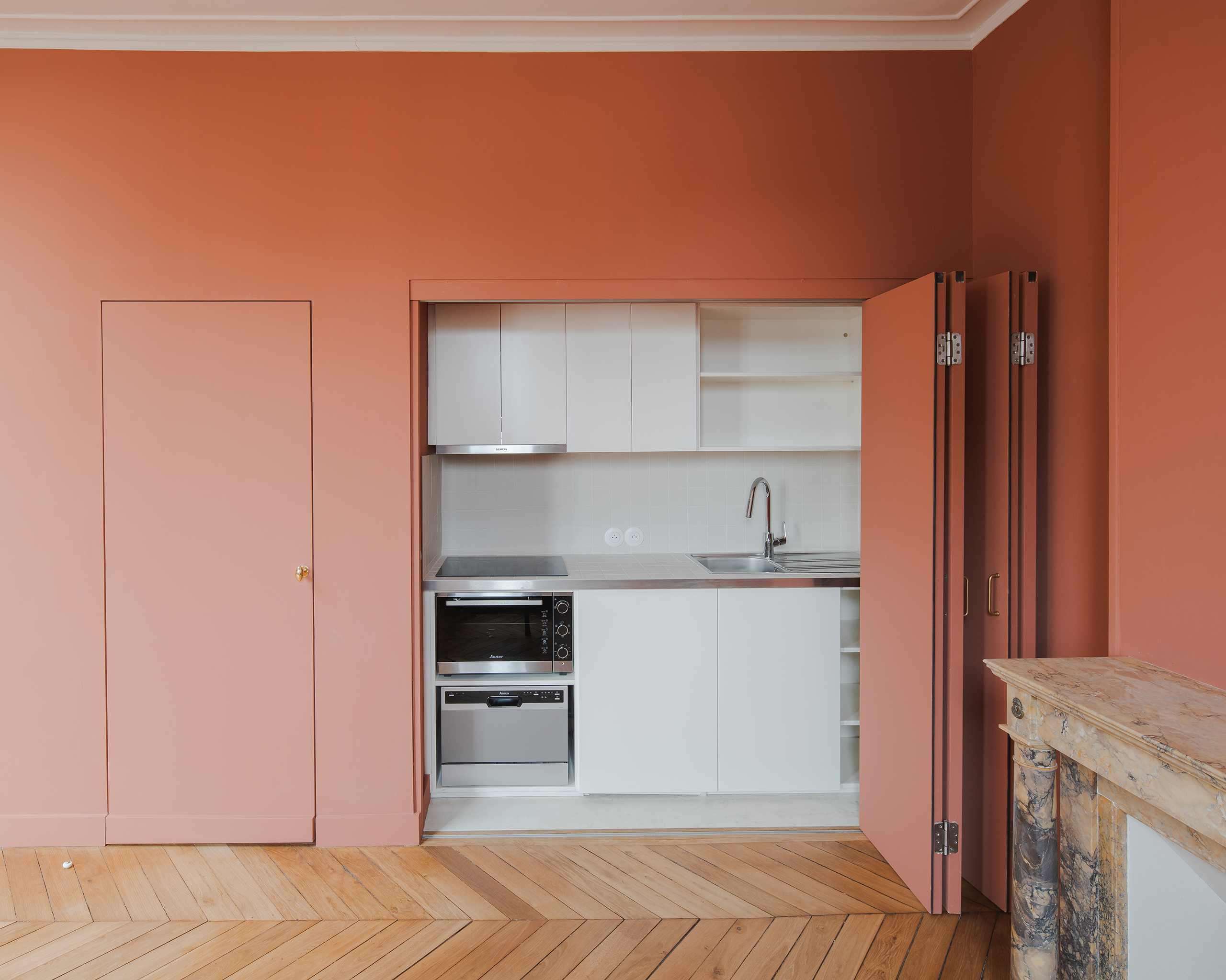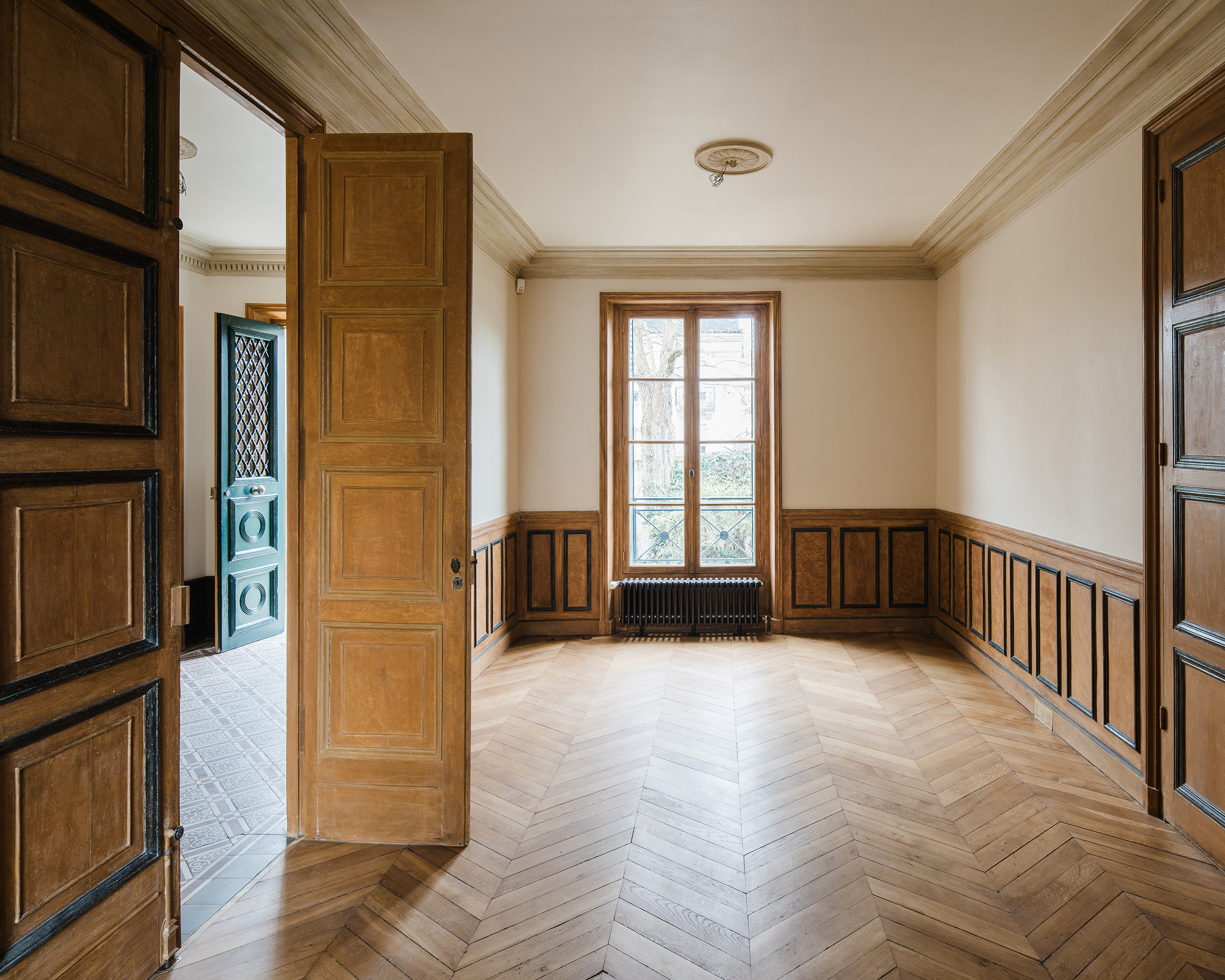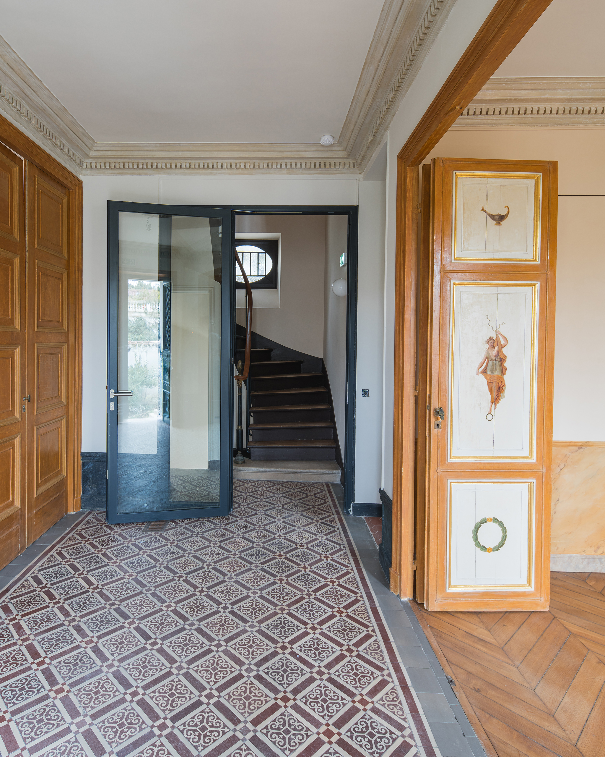 La première phase a consisté en une transformation de la villa afin d’accueillir le public dans la galerie tout en préservant l’intimité des résidences d’artistes créées pour un plasticien et un musicien, à proximité de l’ancienne remise transformée pour un sculpteur. Les aménagements et le mobilier sur mesure répondront aux besoins spécifiques de chaque artiste (acoustique, éclairage…), tout en s’inscrivant avec soin dans le contexte classé.